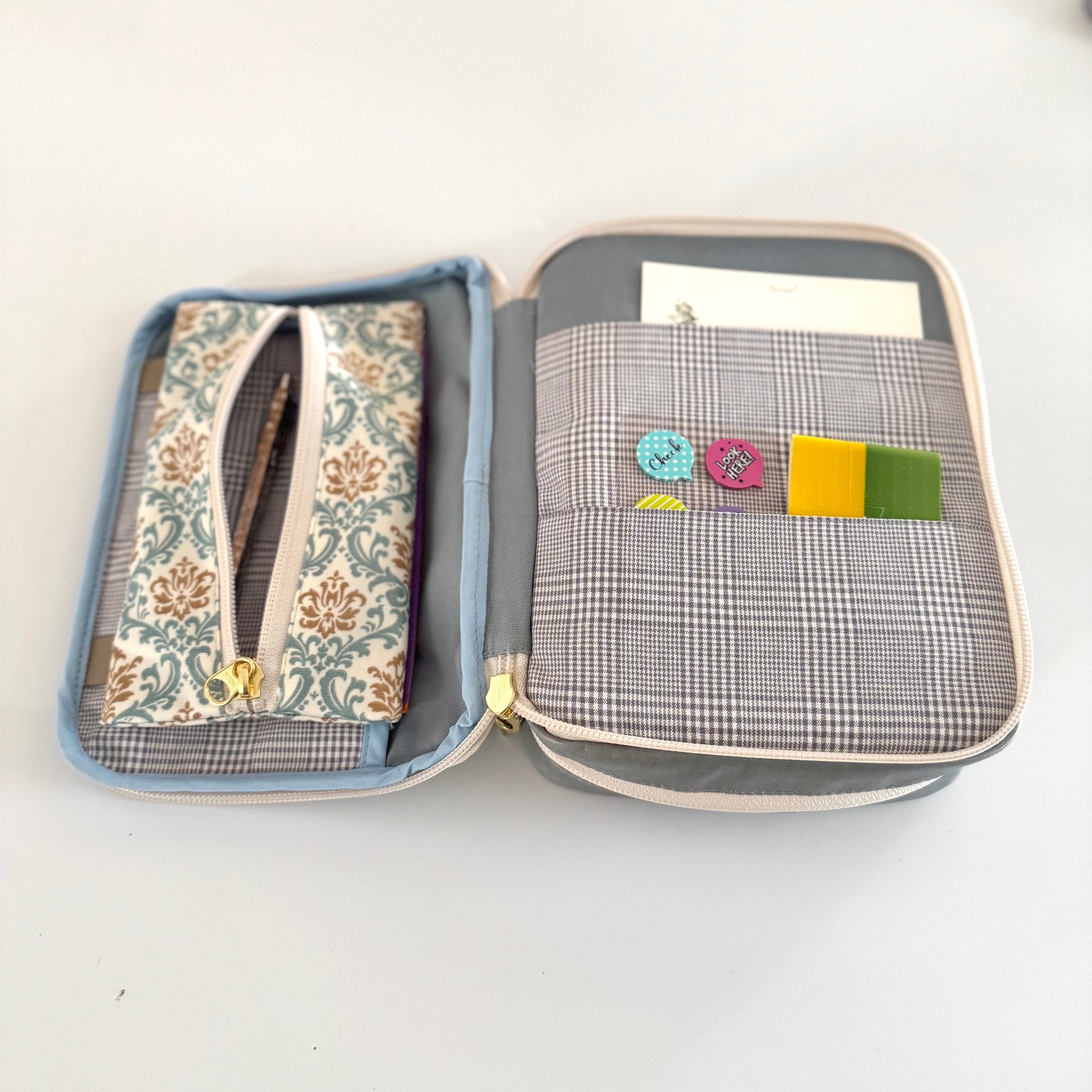収納力バツグン!ペンも付箋もメモ帳もワンセットで持ち歩ける中型聖書カバー◆ダマスク