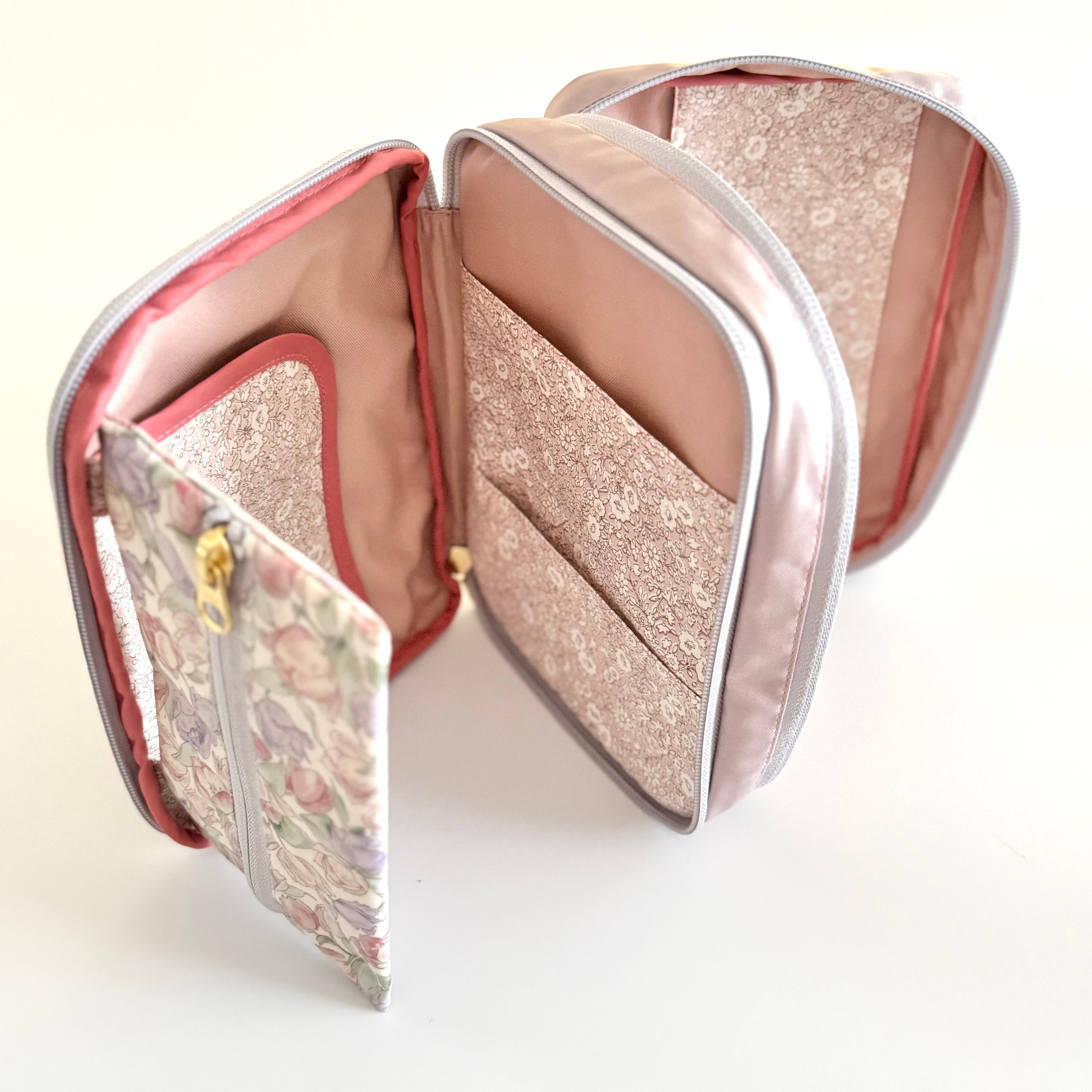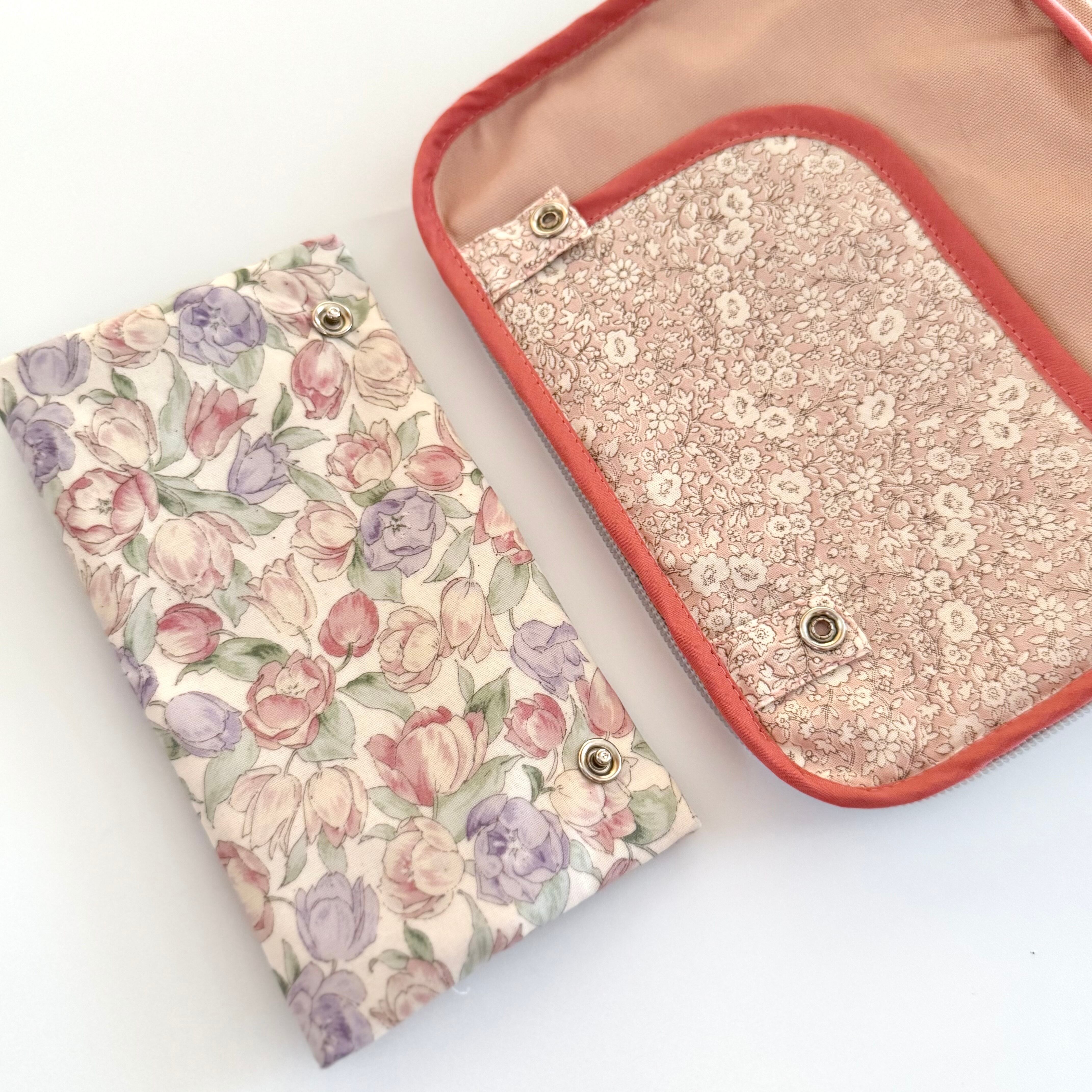 収納力バツグン!ペンも付箋もメモ帳もワンセットで持ち歩ける中型聖書カバー◆ピンク花柄