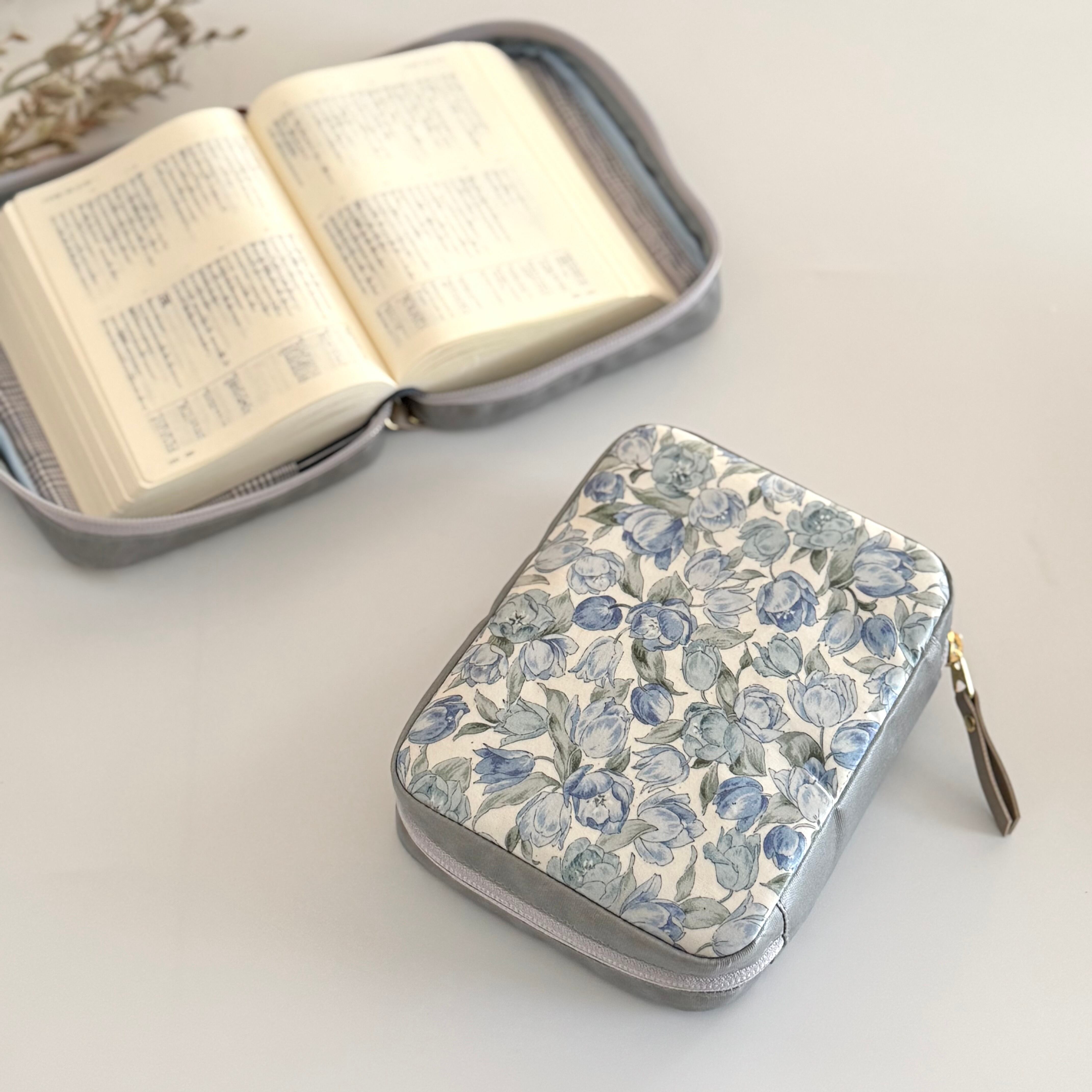 ラミネート小型聖書カバー◆ブルー花柄