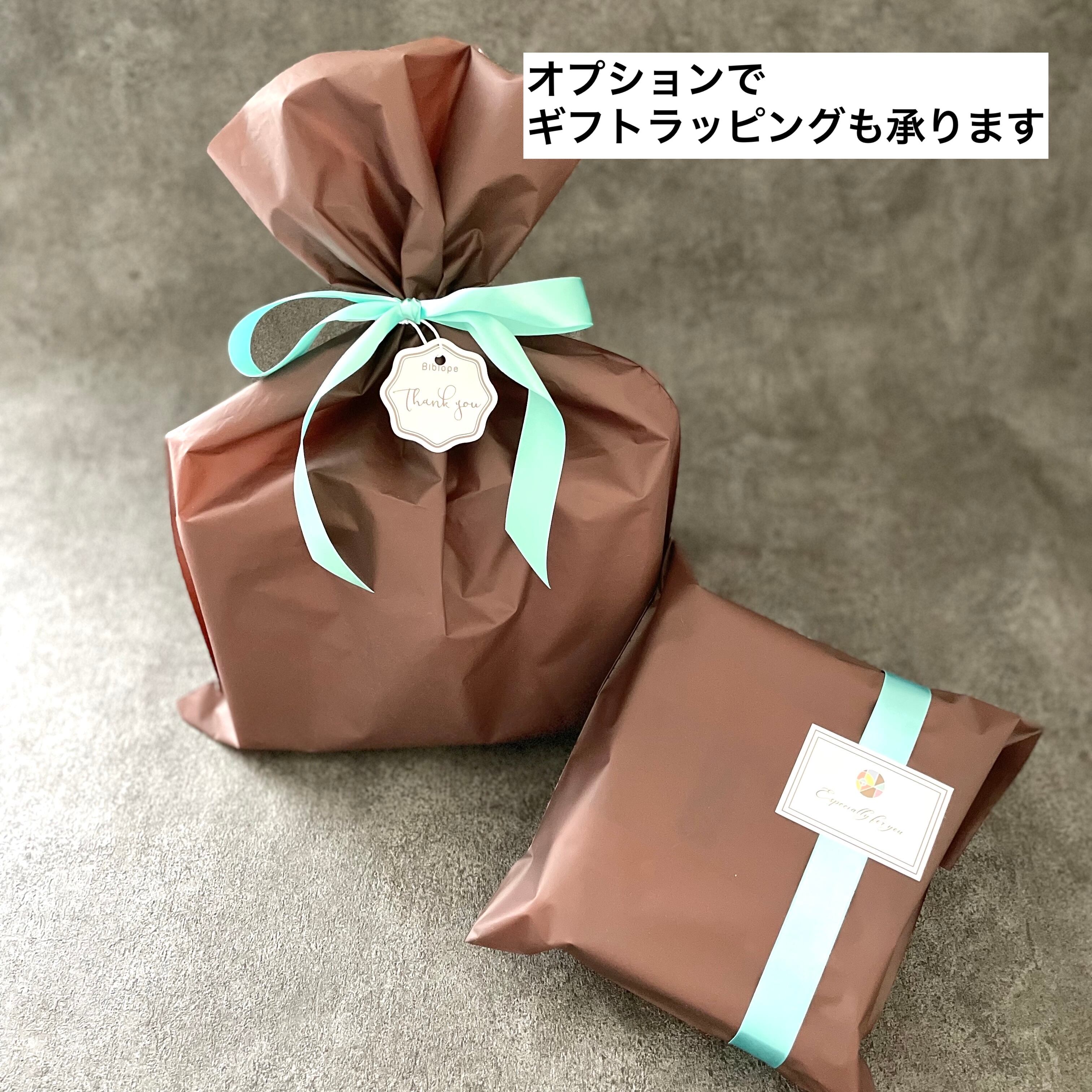 マットな質感の袋に、リボンをかけて丁寧にお包みし、お届けいたします。