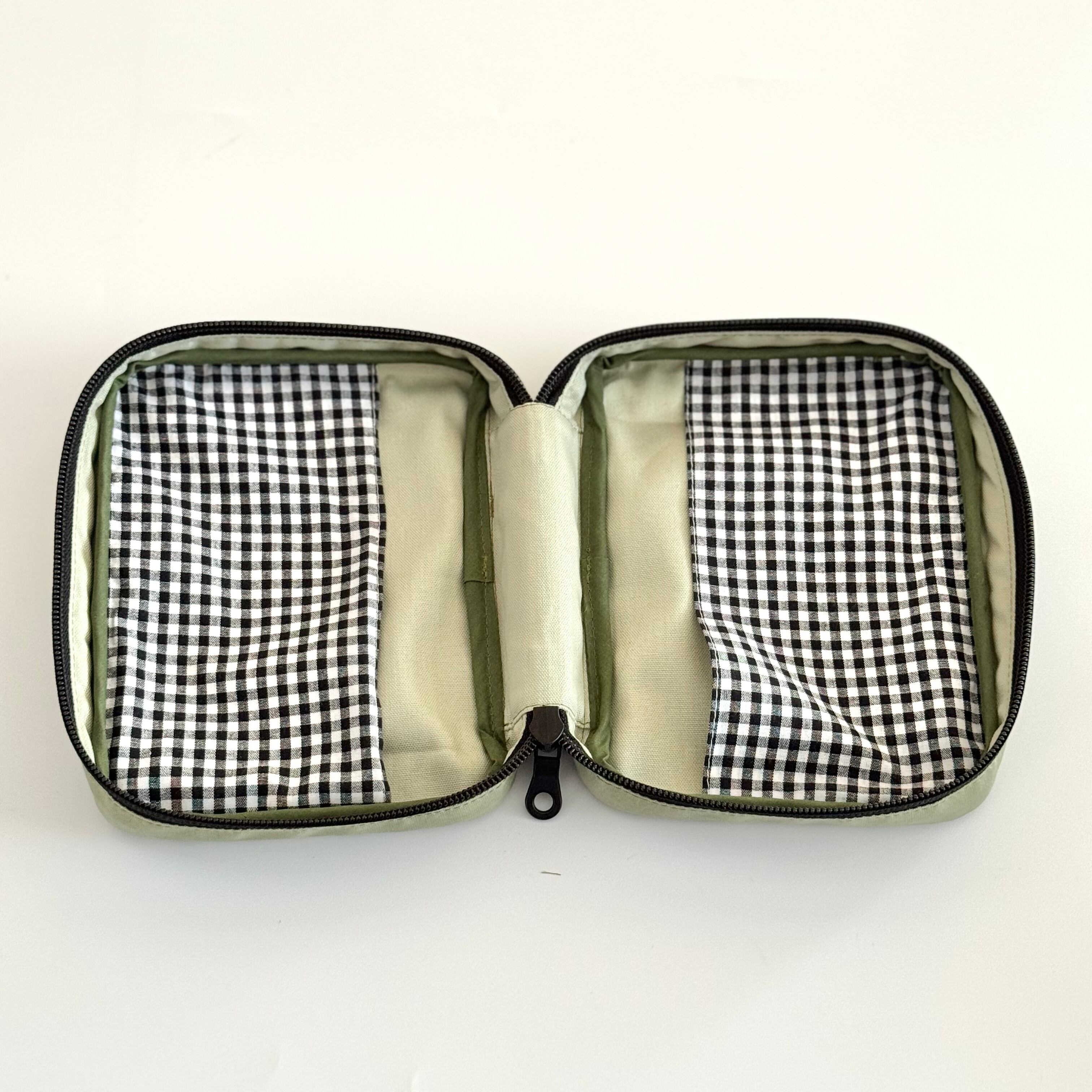 内生地は無地グリーンのコットンとチェック生地を合わせました。