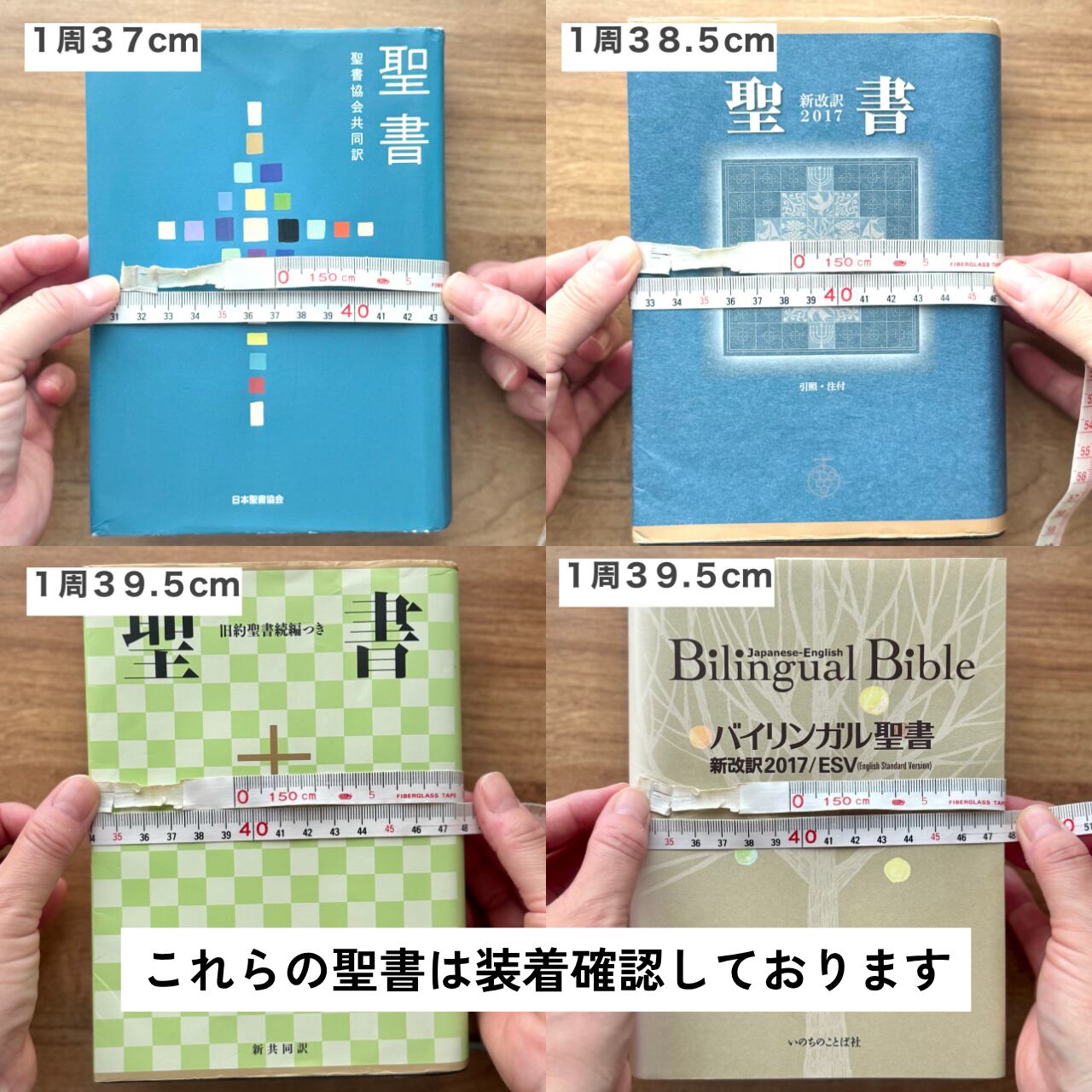 すべての訳、版の聖書を手元に用意することが難しいため、実際に装着確認はできませんがサイズが合えば問題なくご使用いただけます。