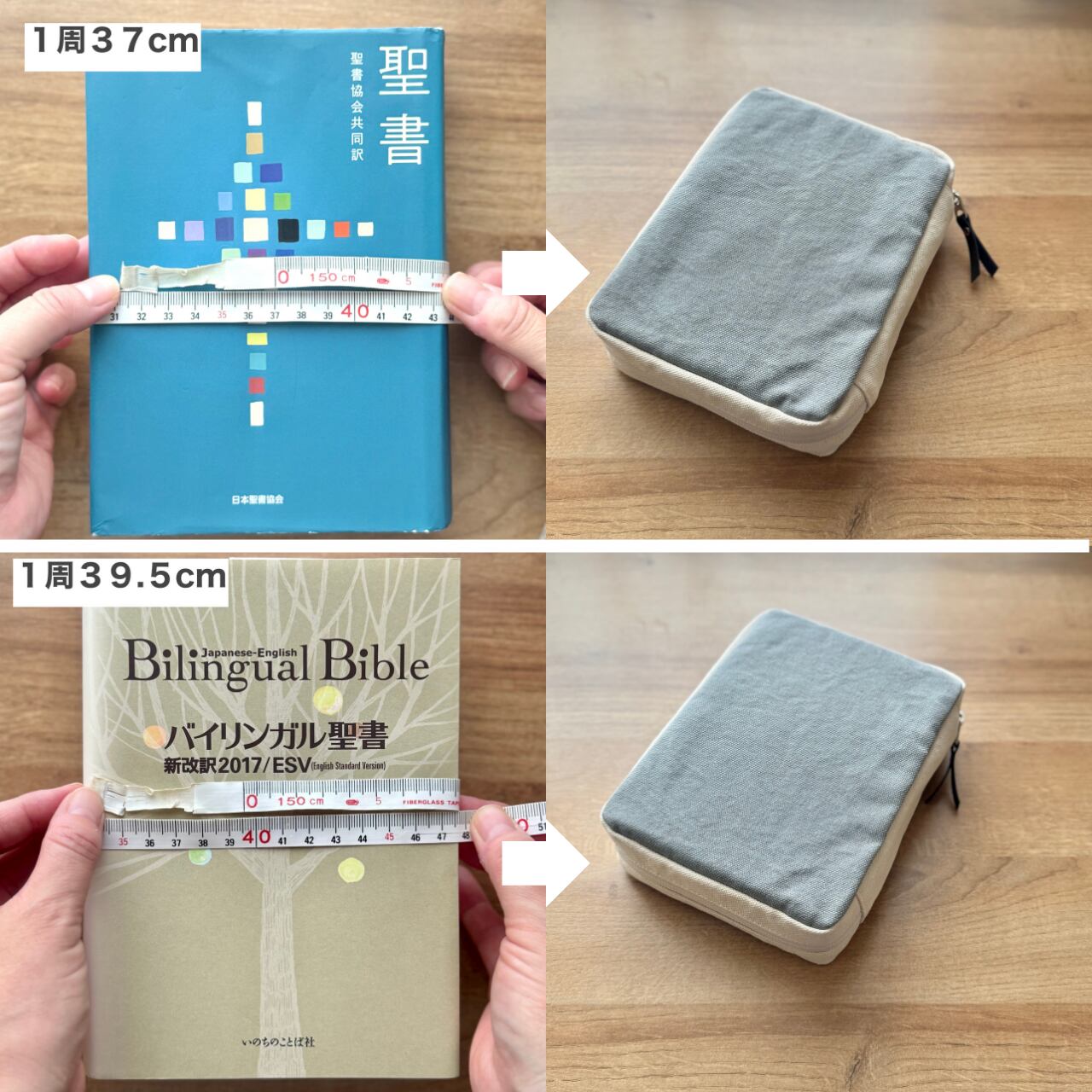 お手持ちの聖書のサイズをよくご確認のうえ、お選びください。