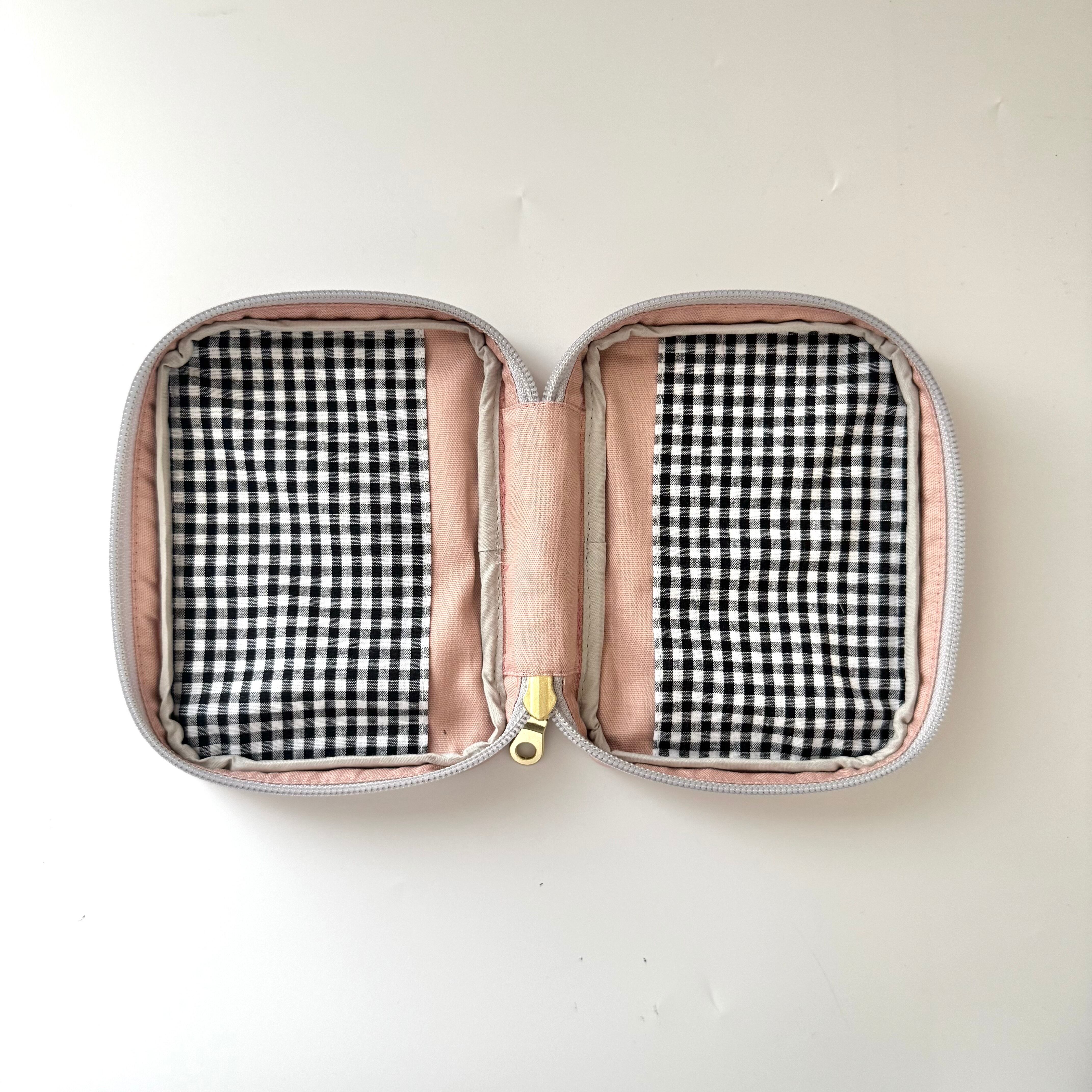 内生地は無地くすみピンクのコットンとチェック生地を合わせました。