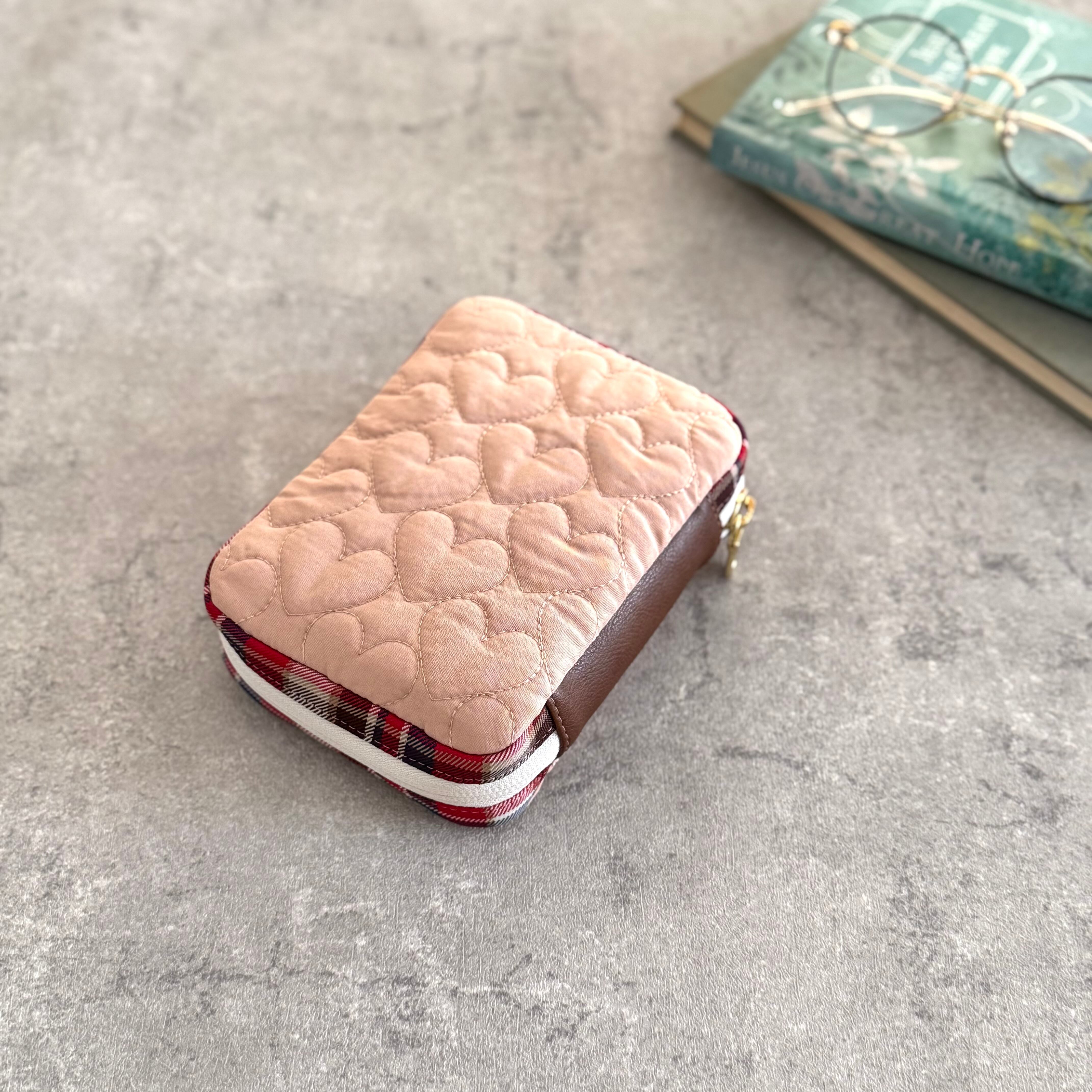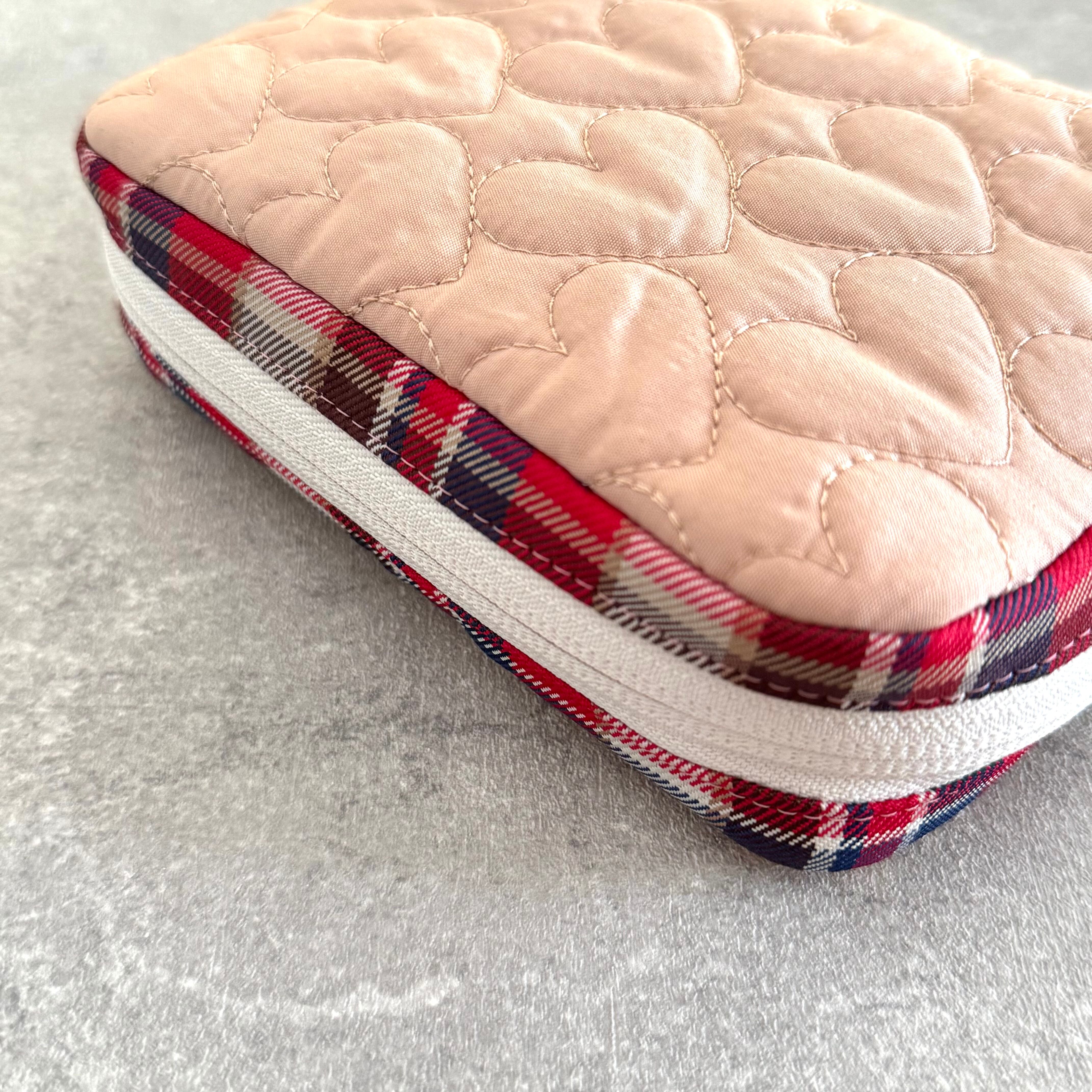 ファスナーマチはタータンチェックとブラウンの合皮を合わせました。