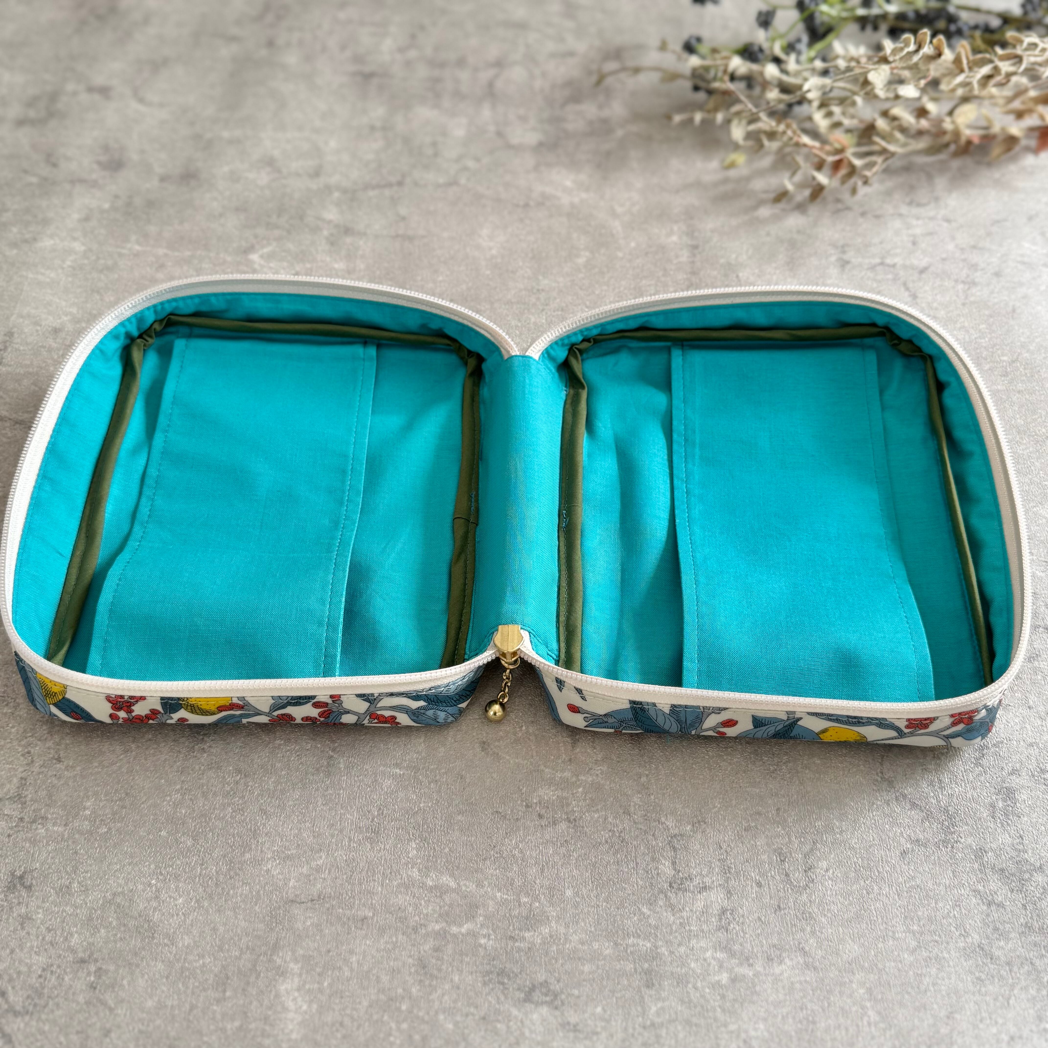 中型聖書カバー◆Conservatory Fruits. 内布:ターコイズブルーコットン